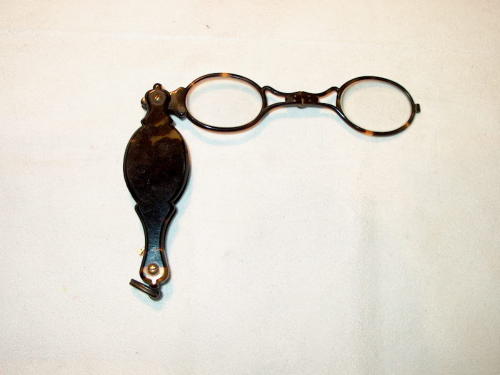 Fassamano in ottone di forma ovale allungata. Il manico funge da astuccio-impugnatura. Le lenti sono ovali.[Descrizione estratta dal database del Museo dell'Occhiale]. Fassamano in tartaruga con giunture in ottone. Lenti ovali e corta impugnatura.