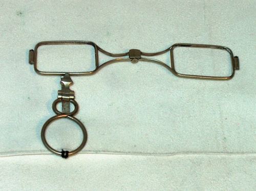 Fassamano in ottone, lenti squadrate e piccola impugnatura a forma di "8". [Descrizione estratta dal database del Museo dell'Occhiale]. Privo di lenti di forma rettangolare.