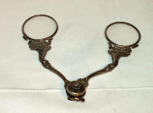 Fassamano (occhiale a forbice) detto degli "incredibili". Presenta sull'impugnaturo una serie di lavorazioni classiche.[Descrizione estratta dal database del Museo dell'Occhiale].