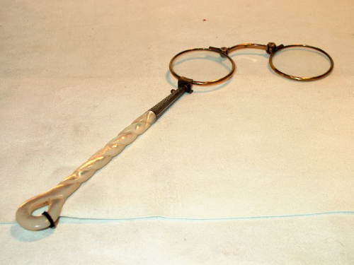 Fassamano in ottone con impugnatura a forma di corda ripiegata. [Descrizione estratta dal database del Museo dell'Occhiale]. Lenti rotonde.