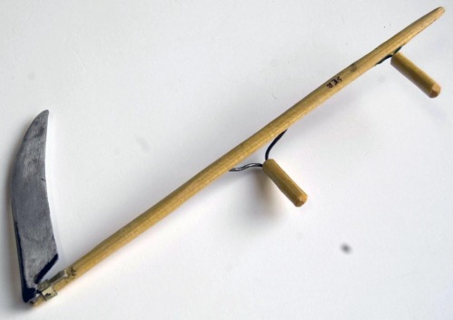 - FUNZIONE E MODALITÀ D'USO oggetto con funzione dimostrativa, realizzato su modello dell'attrezzo usato dai contadini per effettuare il taglio dell'erba