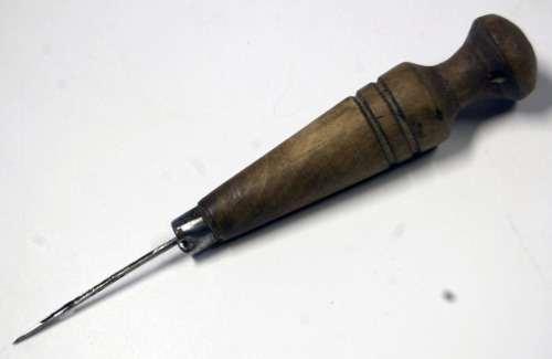 FUNZIONE E MODALITÀ D'USOserviva ad aprire i fori e a far passare lo spago impeciato per cucire la suola e la tomaia delle scarpe; usata in particolare per cucire materiali, come la gomma, nei quali il foro tende a richiudersi