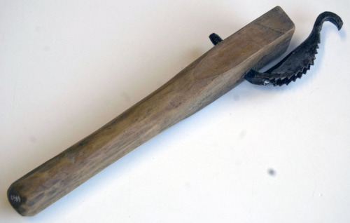 FUNZIONE E MODALITÀ D'USOattrezzo utilizzato per la produzione delle #galòthe#: calzature tradizionali con suola di legno e tomaia di cuoio; serviva a scavare il solco lungo il bordo della suola, nel quale veniva inchiodata la tomaia