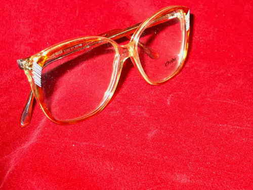 Occhiali in materiale sintetico colorato a due colori: giallino e maroncino. Ai lati degli oculi, in alto, ci sono degli impreziosimenti a linee. Sull'astina destra: PIAVE OPTIK 5262 11 52/16 [Descrizione estratta dal database del Museo dell'Occhiale.]