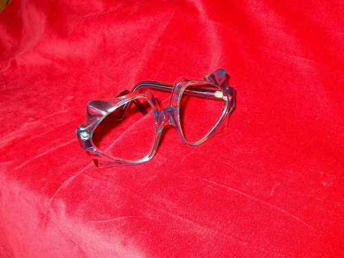 Questi occhiali in acetato, mancanti delle lenti, hanno la forma a farfalla. Sono colorati, in tinte pastello, rosa e azzurro. [Descrizione estratta dal database del Museo dell'Occhiale.]