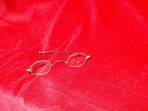 Questi occhiali in ferro, leggeri, hanno le astine ripiegabili a perno e le lenti ovali. [Descrizione estratta dal database del Museo dell'Occhiale.]