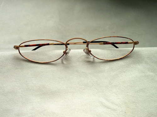 Gli occhiali, in metallo colorato oro e rifiniti con smalto cinese, recano, all'interno dell'astina sinistra: R 23456 A 140 Ce R Rodestock e di quella destra: 40 - 21. [Descrizione estratta dal database del Museo dell'Occhiale.]