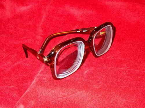 La montatura di celluloide è completa di lenti. Porta la firma "Trenti". [Descrizione estratta dal database del Museo dell'Occhiale.]