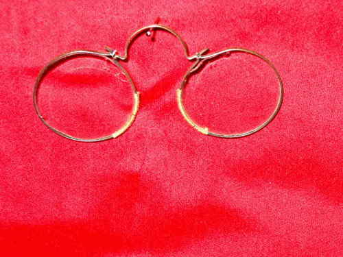 Questo esemplare di occhiali da naso è in rame e reca ancora il cordolo in seta sulle parti che andavano a contatto con le narici. Lungo i cerchi la marcatura " Ionas Schwartz In Furim". [Descrizione estratta dal database del Museo dell'Occhiale.]