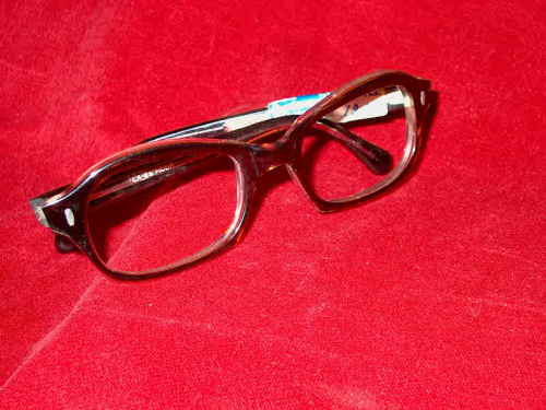 Questa montatura per occhiali, in materiale sintetico colorato in "bronzè" è stato prodotto dalla ditta Optistyle - La.es (Varese). [Descrizione estratta dal database del Museo dell'Occhiale.]
