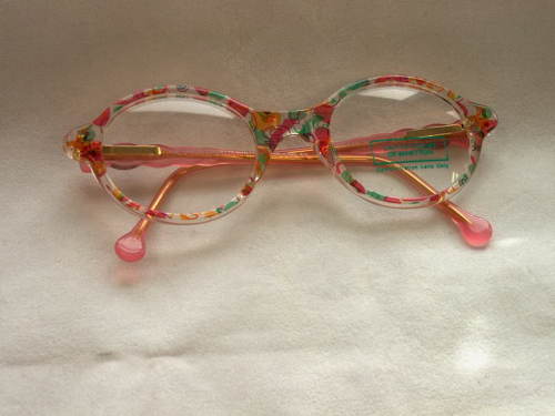Questi occhiali per bambini in materiale sintetico colorato ad effetto arcobaleno recano all'interno dell'astina sinistra: Ben. 127 640 42-19 120 e di quella destra: 120 United colors Of Benetton Made in Italy 5/3. All'esterno delle astine: 012 e sulla lente sinistra: United Colors Of Benetton Demostration Lens Only. [Descrizione estratta dal database del Museo dell'Occhiale.]