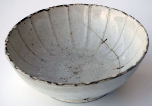 recipiente di ceramica di forma circolare con sponda alta e svasata; bordo superiore e superficie interna della sponda leggermente ondulati; smaltata di bianco sia allinterno che allesterno; marchio di fabbrica sul fondo