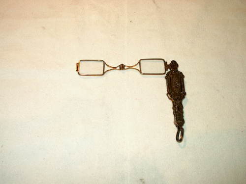 Fassamano in argento montato a ciondolo e terminante con un anello in modo da poterlo agganciare ad una collana. L'impugnatura funge da astuccio quando l'occhiale non viene usato e in questo caso è realizzato in argento inciso a motivi fantasiosi. [Descrizione estratta dal database del Museo dell'Occhiale.]