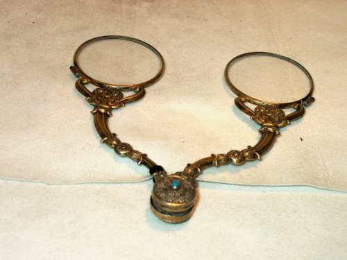Fassamano (occhiale a forbice) detto degli "incredibili". Presenta sull'impugnaturo una serie di lavorazioni classiche. [Descrizione estratta dal database del Museo dell'Occhiale.]