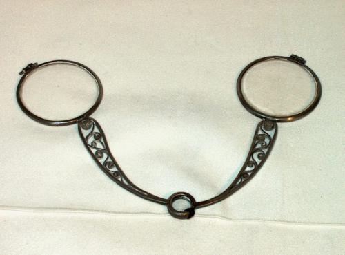Fassamano della serie detta degli "Incroyables", dalla forma molto semplice. Alcuni piccoli riccioli di filigrana d'argento decorano l'interno del supporto delle lenti.[Descrizione estratta dal database del Museo dell'Occhiale.] Fassamano del tipo a forbice, dalla forma molto semplice. una gradevole decorazione a piccoli riccioli di filigrana d'argento, di gusto già bidermeier, è inserita all'interno dei supporti dell'impugnatura. [Descrizione riportata nella scheda cartacea del Museo dell'Occhiale.]