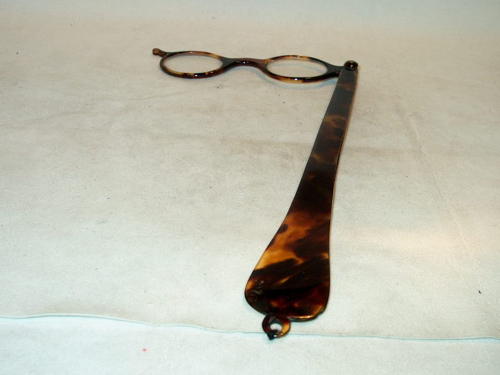 Fassamano in tartaruga a impugnatura lunga. L'occhiale può essere ripiegato e inserito nel centro del manico che normalemente è molto lungo ed è a goccia. Questo tipo di fassamano venne impiegato dalla metà del 1800 sino al 1920 circa. [Descrizione estratta dal database del Museo dell'Occhiale.]