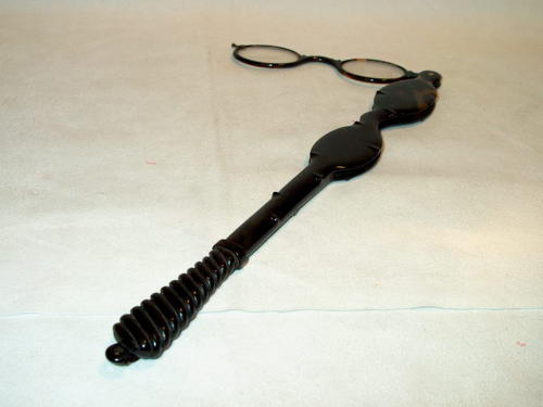 Fassamano a manico lungo in tartaruga. L'astuccio-impugnatura, sempre in tartaruga, è lavorato nella prima parte a bambù e nella seconda a tortiglione. [Descrizione estratta dal database del Museo dell'Occhiale.]