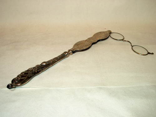 Fassamano in argento con lenti ovali e manico lavorato a motivi floreali. [Descrizione estratta dal database del Museo dell'Occhiale.]
