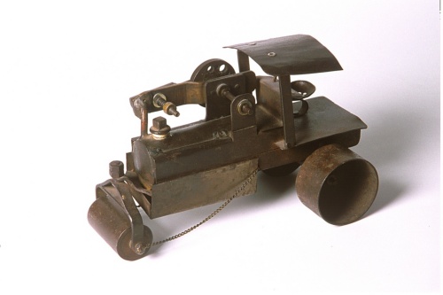 Piccola macchina schiacciasassi che funziona a vapore.