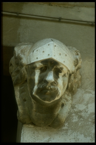 Testa d'uomo baffuto con elmo