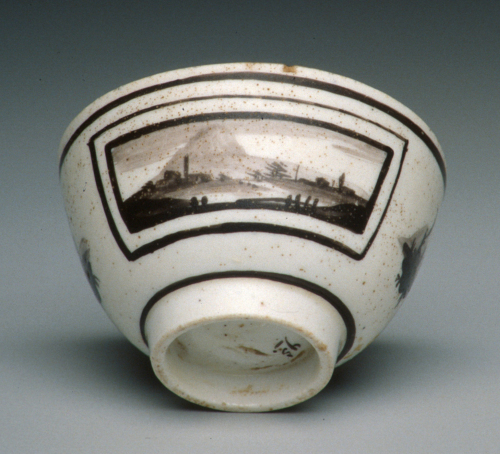 tazzina a coppetta senza manico su base ad anello; decoro in monocromia marrone