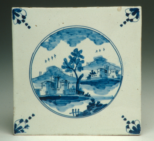 piastrella quadrata "da camin"; decoro in monocromia blu