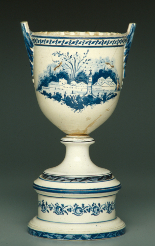 vaso a calice con piedistallo cilindrico staccato; decoro in monocromia blu