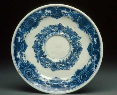 piatto rotondo sottotazza da brodo; decoro in monocromia blu