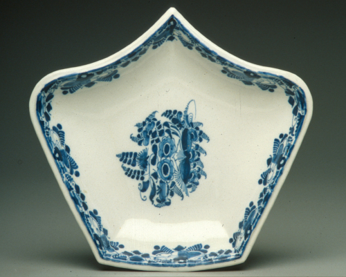 elemento di rysttafelstel a orlo mistilineo; decoro in monocromia blu