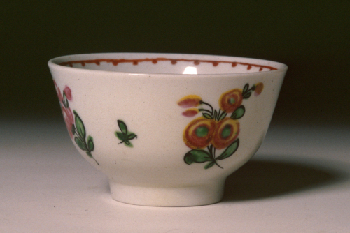 tazzina a coppetta senza manico su base ad anello; decoro policromo