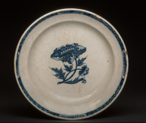 piatto rotondo con tesa liscia; decoro in monocromia blu