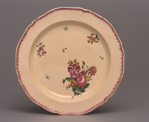 piatto rotondo con breve tesa leggermente mistilinea; decoro policromo