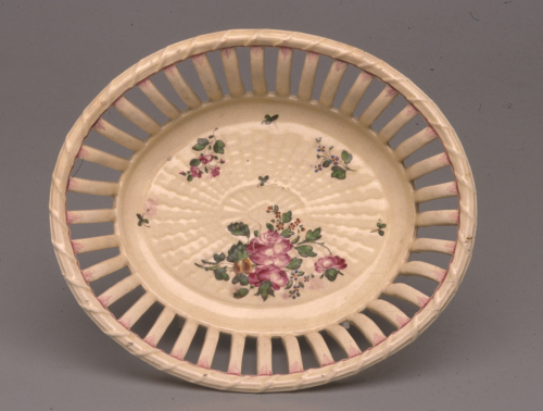 cestino a forma di canestro di vimini; fondo lavorato a intreccio e tesa a giorno con bordo a fascio intrecciato