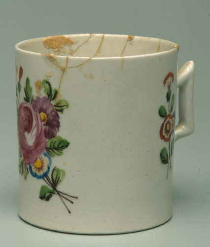 tazza cilindrica da caffè con manico mistilineo; decoro policromo