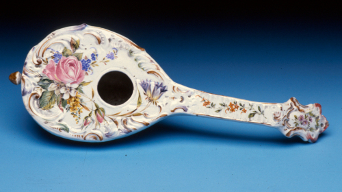 soprammobile a forma di mandolino; decoro policromo