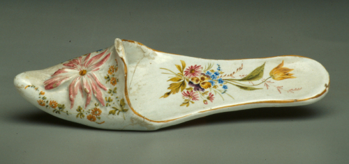 soprammobile a forma di pantofola con punta affusolata; decoro policromo