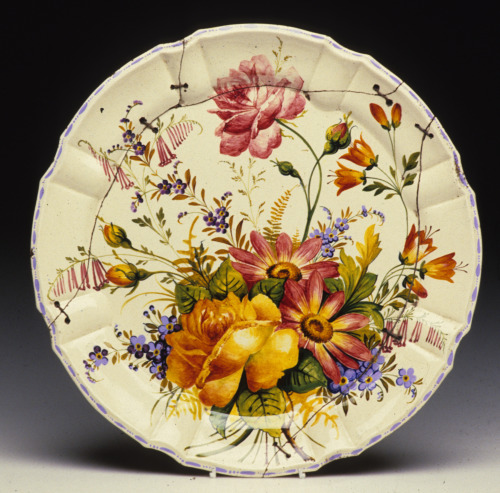 piatto di grandi dimensioni con cavetto appena accennato e tesa ondulata; decoro policromo
