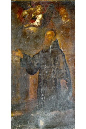 Santo inginocchiato e angelo