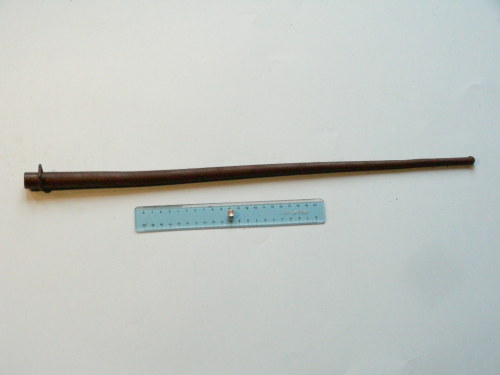 Conico, a sezione tonda, con bottone sferico al puntale e ribattino alla bocchetta.