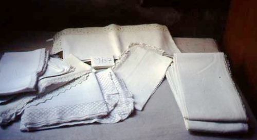Varie tipologie. Tela di lino e borudre ricamate a punto reale, riccio, eticello, unicinetto, fuselli o meccaniche.