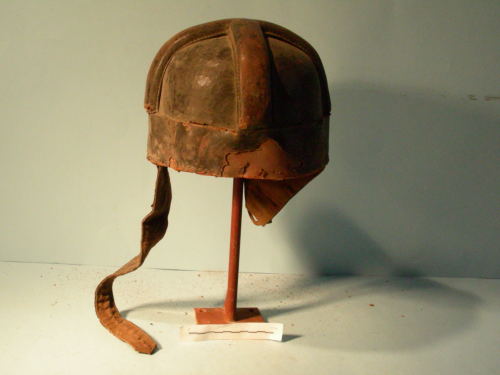 Calotta quadripartita con imbottitura a croce in rilievo; conserva paraorecchie e sottogola con fibbia.