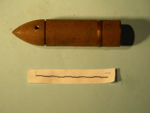 Presenti la corona di forzamento e l'ogiva. Proiettile inertizzato.