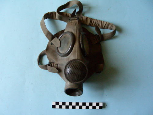 Facciale con due lenti circolari contornate da lamierina metallica e cinque magliette che fissano le stringhe di fissaggio alla nuca con cinghie regolabili. Valvola di scarico anteriore a grata e alloggiamento filettato per il filtro.