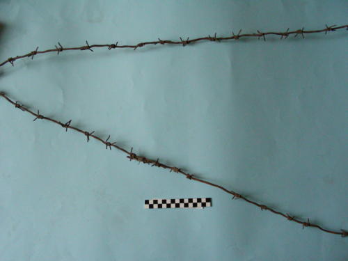 Corda a filo unico quadrangolare con 34 triboli a quattro punte, suddivisa in due segmenti legati tra loro.