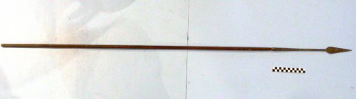 lama a foglia; stelo a sezione non costante tra lama e gorbia; punta a sezione a losanga con nervatura centrale a tutta lama; scanalature decorative su entrambe le facce. Asta non originale, senza puntale.