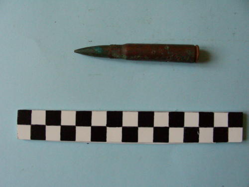Di forma cilindrica, con fondello e restringimento all'apice del bossolo e proiettile conico.