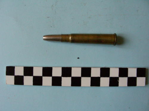 Di forma cilindrica, con fondello e restringimento all'apice del bossolo e proiettile a tronco di cono forato.