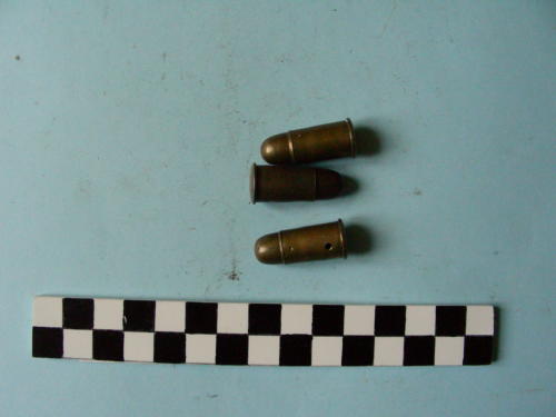 Bossolo di forma cilindrica con fondello; proiettile di forma conica con punta arrotondata.