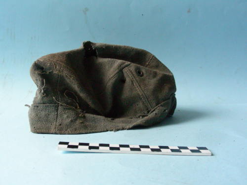 Floscio, a cilindro. Colore girgio-verde militare; quattro rivetti ai lati.