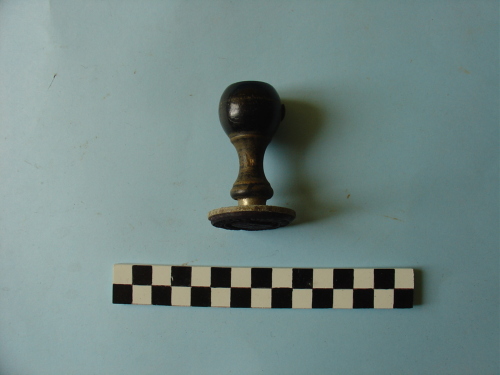 timbro circolare di tipo classico, formato da due elementi separati (il manico dal timbro vero e proprio). La parte in gomma reca, in negativo, una scritta circolare tra due linee; al centro: fascio littorio con scure a sinistra (che diventa a destra nel momento del riporto in positivo con l'inchiostro).